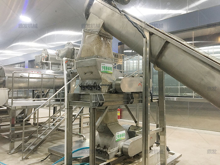 粉碎工序是薯類淀粉生產(chǎn)的主要工序之一,薯塊的粉碎屬于濕粉碎,用通用型的粉碎機(jī)就有很多不足之處,主要表現(xiàn)為效率低、能耗大、噪音和振動(dòng)都很劇烈等。據(jù)眾多中外專家研究論證,薯塊的粉漿不宜過細(xì),其原因?yàn)椋?、粉碎時(shí)間過長會(huì)損傷淀粉顆粒;2、不溶于水的果膠與細(xì)渣和被損傷的淀粉顆粒相互粘連,使分離工序增加了難度,影響淀粉質(zhì)量,反而降低了得率。